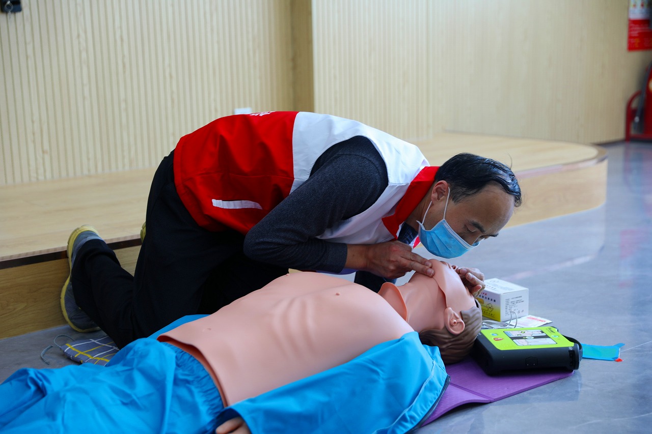 培訓中,授課老師通過理論和實操相結合的方式,詳細講解了心肺復蘇術急救法的應用背景和操作流程,對“AED體外除顫儀”使用的原理、目的、適應癥、禁忌癥、操作規范、注意事項等方面進行了解釋說明,并利用人體模型進行了“AED體外除顫儀”的操作演示。