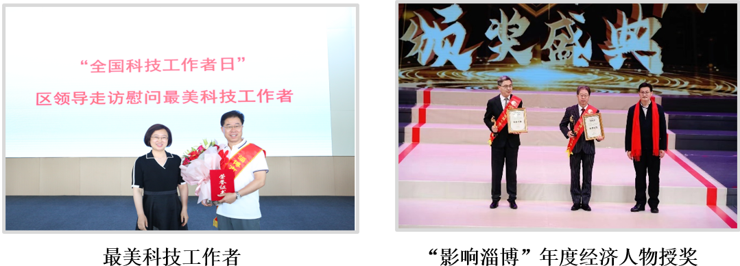 2021年度“創新淄博年度領秀人物”、2021年度“影響淄博”年度創新人物、2023年度 “影響淄博”年度經濟人物、首屆“淄博市質量領軍人物”、“淄博最美人大代表”等榮譽稱號,并作為市人大代表參加第十六屆人民代表大會第四次會議,勇擔社會責任,助力當地經濟發展。