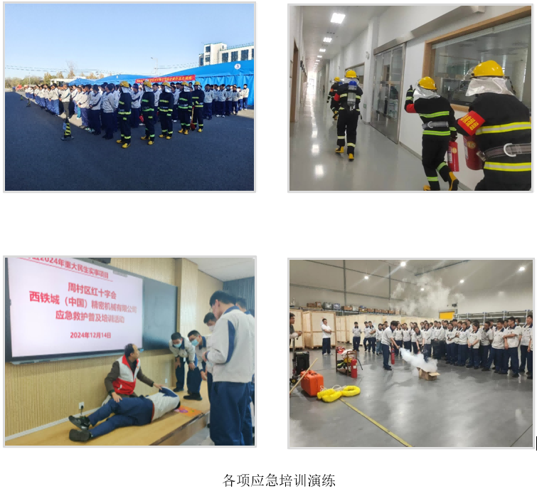 2024年度開展消防綜合逃生演練、車輛傷害專項應急演練、機械傷害現場處置方案演練、倉儲物體打擊現場處置方案演練、火災事故現場處置方案演練、檢維修中暑事故處置方案演練等,共計13次。
